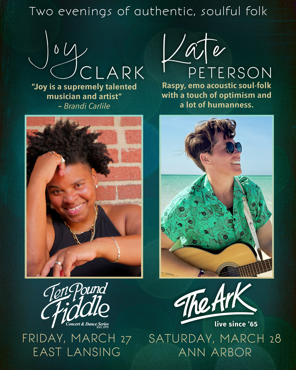 Beginning in 2005, Michigan-based singer songmaker and multi-instrumentalist Kate Peterson has traveled the US and Europe winning the hearts of vulnerability lovers everywhere. For 10 years, she spilled her heart onto hundreds of stages, opened for her heroes and sparked thousands of laughs (and almost as many tears) with her folk duo, Nervous but Excited. These days, Kate is a home-makin’ hobbyist who swaps her wood-working tools for a microphone for only the most special of occasions.